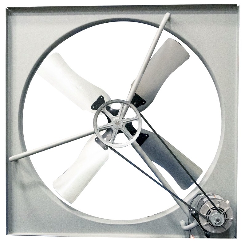 This fan runs on 115/120V single-phase at 1725 RPM. The belt-drive