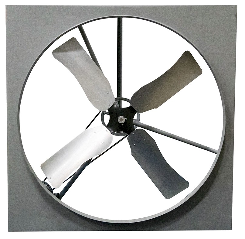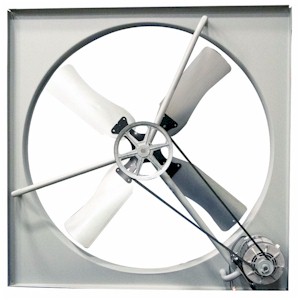 This fan runs on 115/120V single-phase at 1725 RPM. The belt-drive